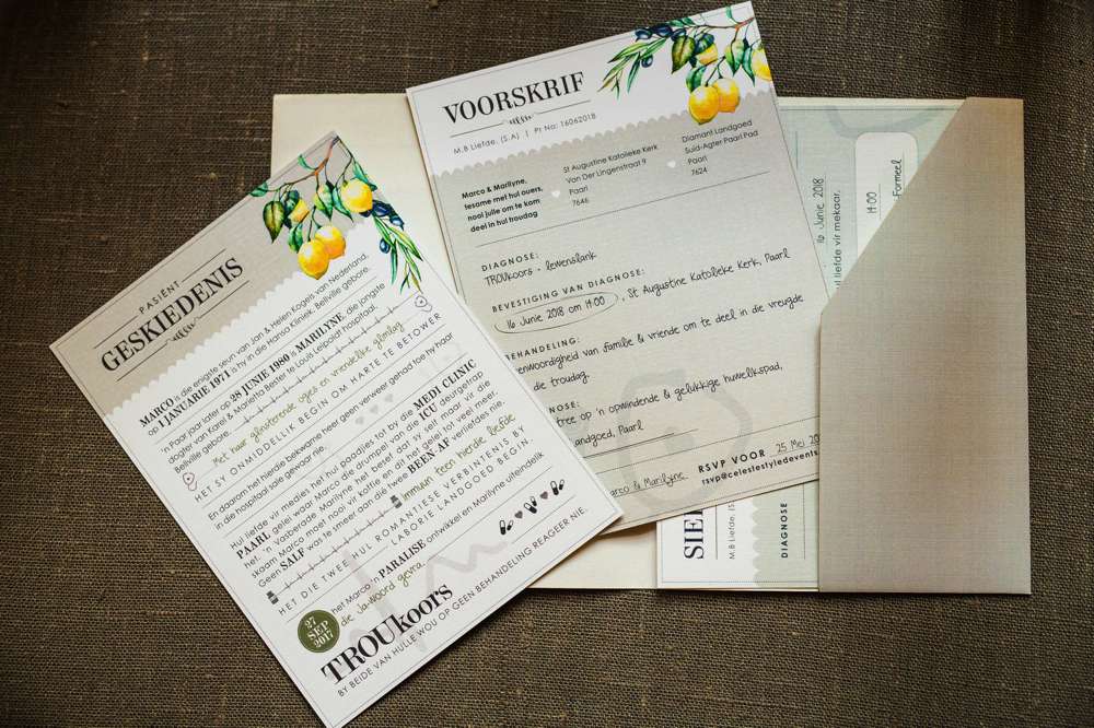 You certainly did not disappoint with the climax of the story ringing church bells and scattered confetti rain. With nearly the entire Medi Clinic’s Medical staff attending your celebration we certainly hope no one needed any emergency CPR on this most gorgeous winter day. Those Doctor’s script invites where so fitting to your whole diagnosis and we love the little touches of ‘you’ that we brought into the day – from your love of limoncello and Italy to the dance classes you took for 3 months leading up to the special day – all just to have the perfect opening dance on Ed Sheran’s Perfect.